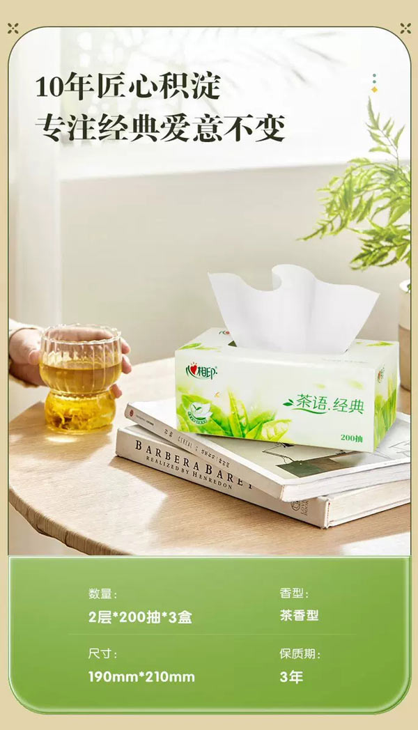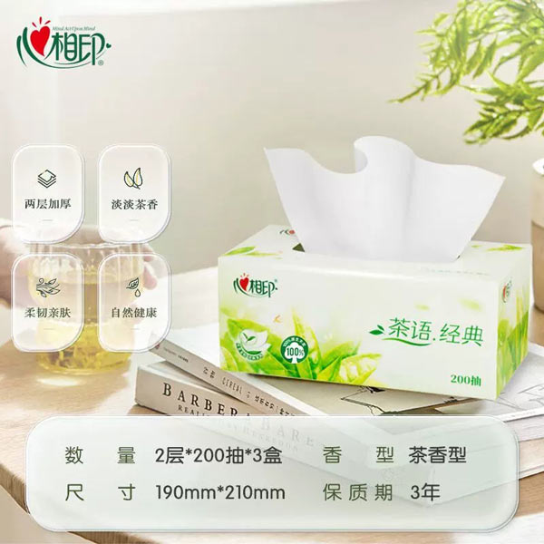 心相印盒抽茶语经典茶香硬盒2层200抽盒抽